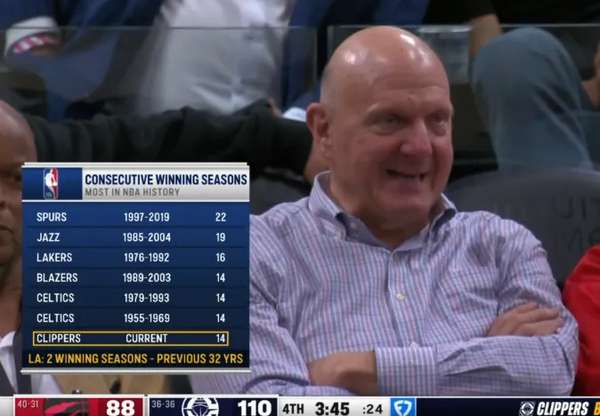有意思的是,當(dāng)斯臺(tái)普斯中心的大屏幕亮起一組數(shù)據(jù)時(shí),現(xiàn)場(chǎng)球迷爆發(fā)出陣陣歡呼。原來(lái)快船已經(jīng)悄悄創(chuàng)造了連續(xù)14個(gè)賽季勝率過(guò)半的壯舉——這可是現(xiàn)役球隊(duì)中最長(zhǎng)的紀(jì)錄。放眼整個(gè)NBA歷史,能壓過(guò)他們的也只有三支傳奇球隊(duì):馬刺的22年王朝、爵士的19年輝煌,以及湖人16年的"Show Time"時(shí)代。